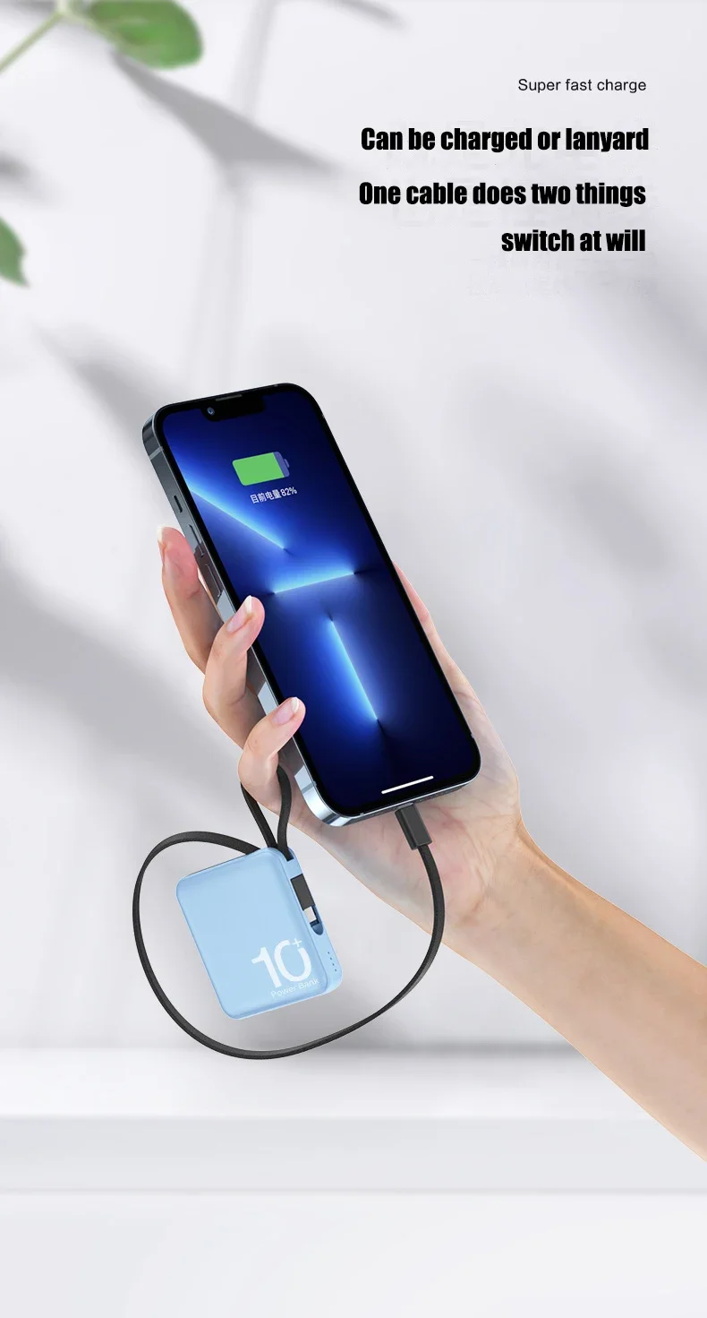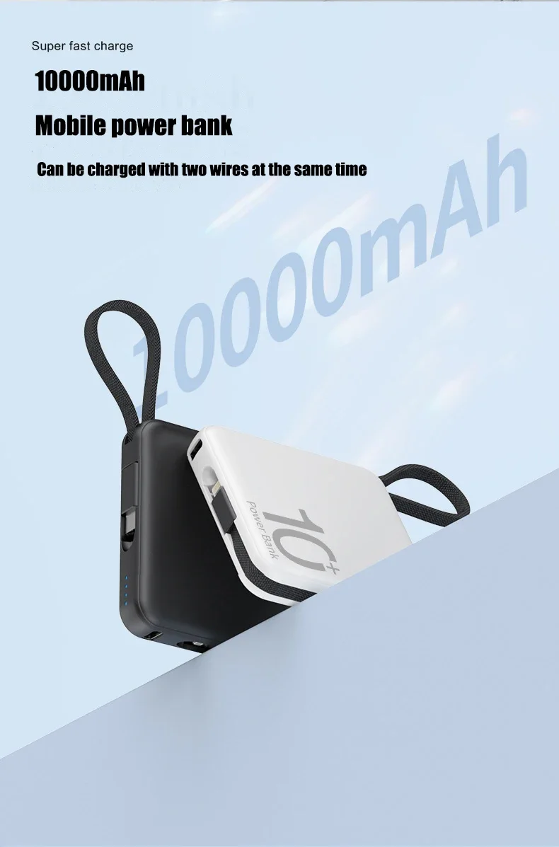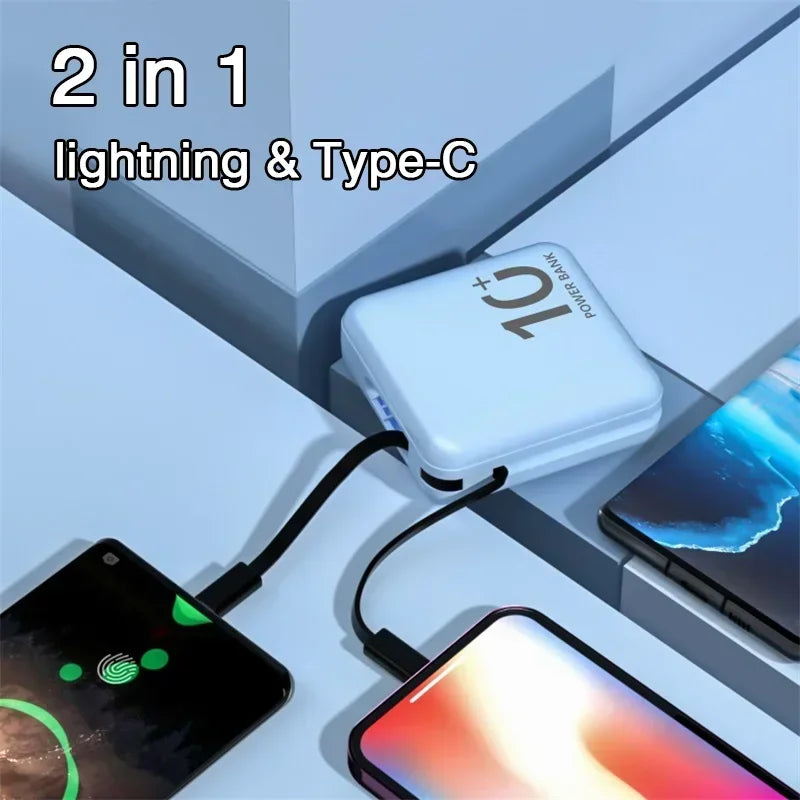 10000mAh Portable Mini Power Bank Build-in Cable Fast Charger External Spare Battery 5000mAh Small Powerbank For iPhone Xiaomi