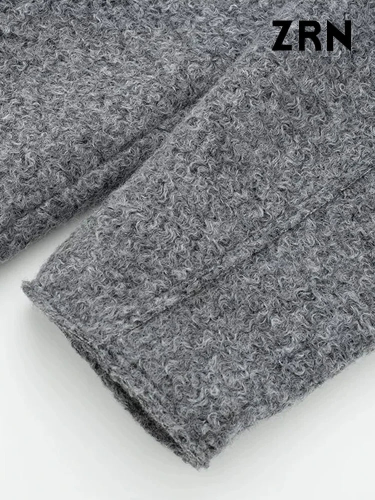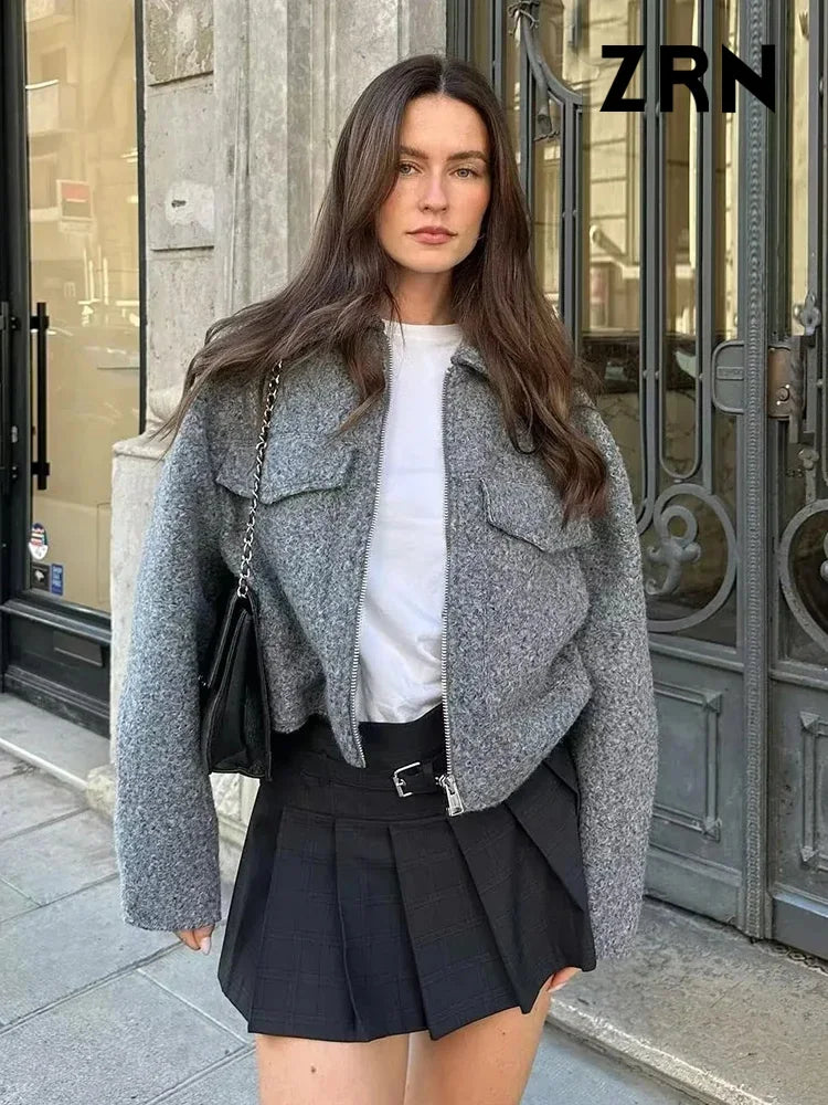 ZRN Women Fashion Patch Pockets With Flaps Cropped Jacket Coat Vintage Long Sleeve Front Zipper Female Outerwear Chic Tops